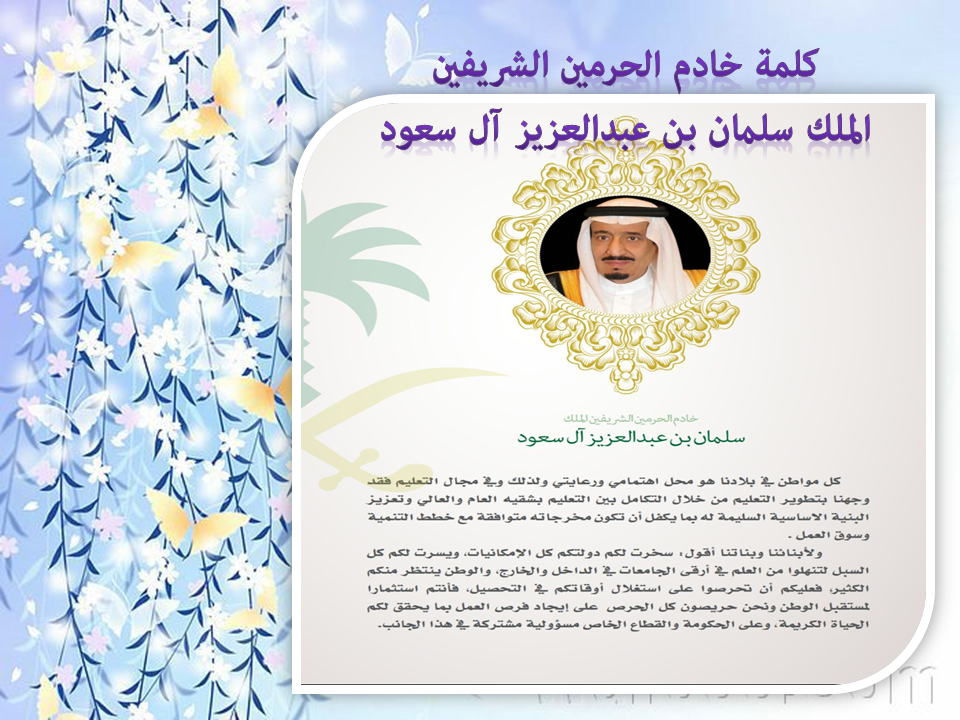 كلمة الملك سلمان للشعب. كلمة القاها الملك السعودي سلمان بن عبدالعزيز ال سعود بعد وفاة العاهل السعود الملك عبدالله بن عبدالعزيز. كلمة خادم الحرمين الشريفين الملك سلمان بن عبدالعزيز للشعب السعودي حيث وجه رسالة للشعب السعودي بعد فاشية. كلمة خادم الحرمين الشريفين الملك سلمان بن عبدالعزيز حول أزمة فيروس كورونا المستجد.
